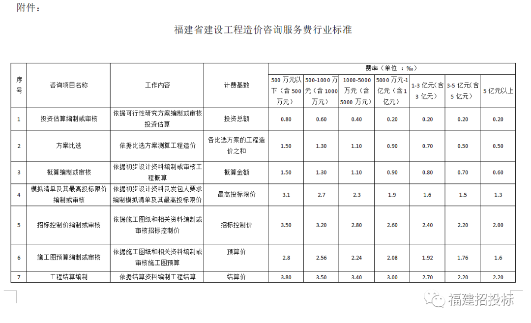 附件:《福建省建设工程造价咨询服务费行业标准》